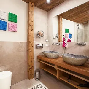 De 4-badkamer villa heeft een badkamer, voorzien van een douche en een wasmachine.