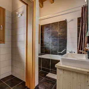 Deze gesitueerde in La Tzoumaz Chalet Flocon De Neige - Jacuzzi - Sauna heeft een badkamer, voorzien van een bubbelbad.